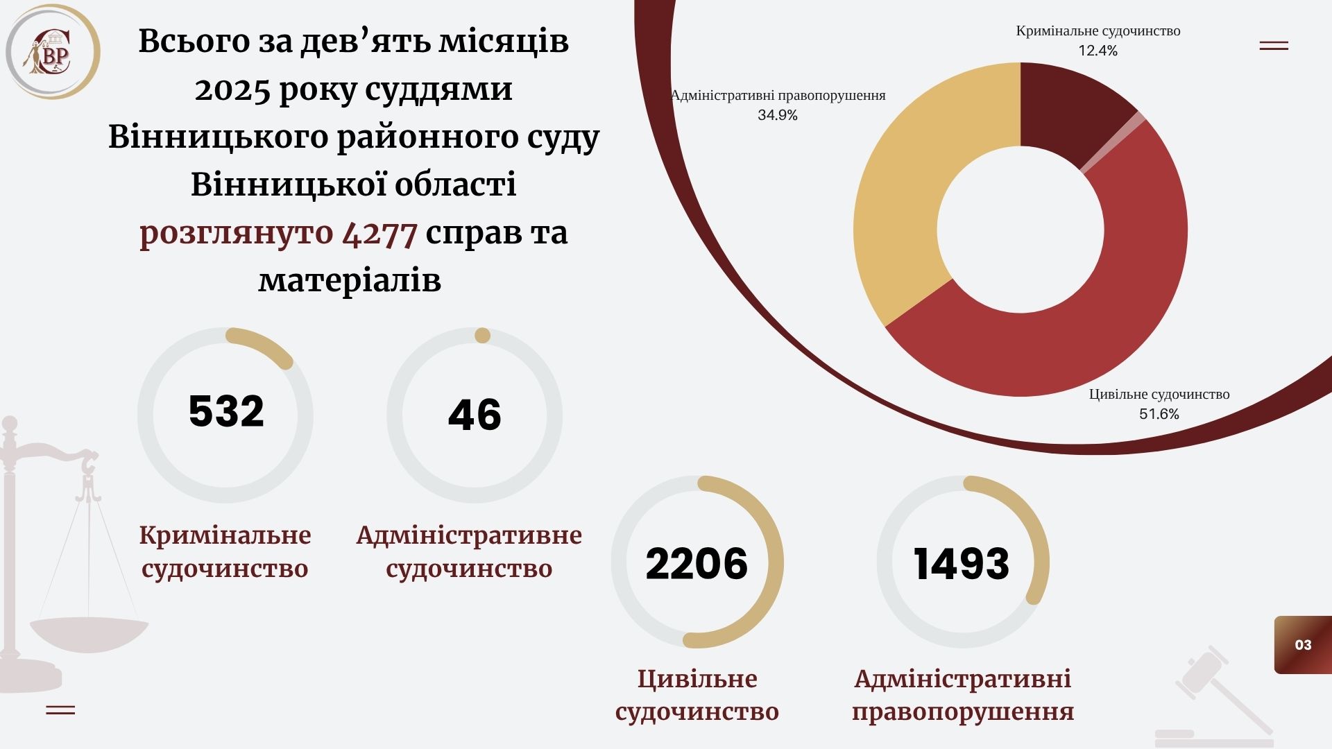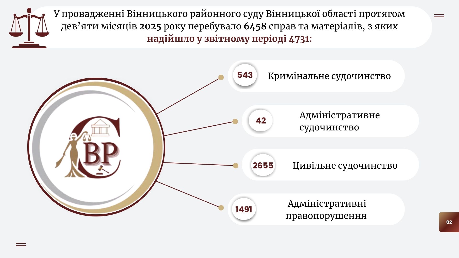 Ключові показники та статистична інформація щодо роботи суду за дев'ять місяців 2025 року