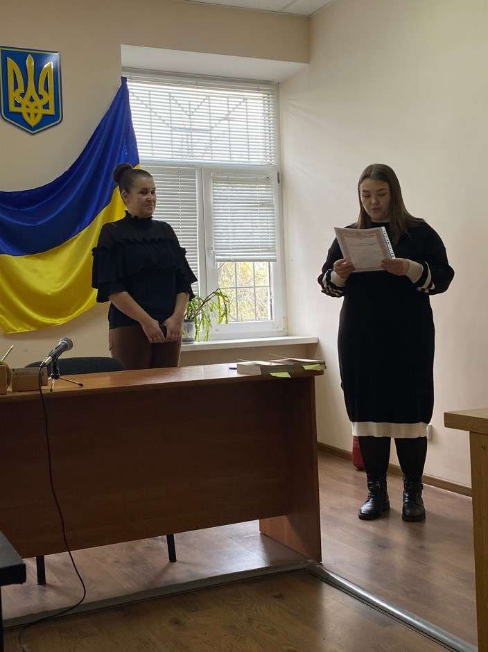 Виконуюча обов’язки керівника апарату суду Ганна Данилова та працівники апарату суду привітали новопризначеного державного службовця та побажали успіхів та натхнення у роботі.