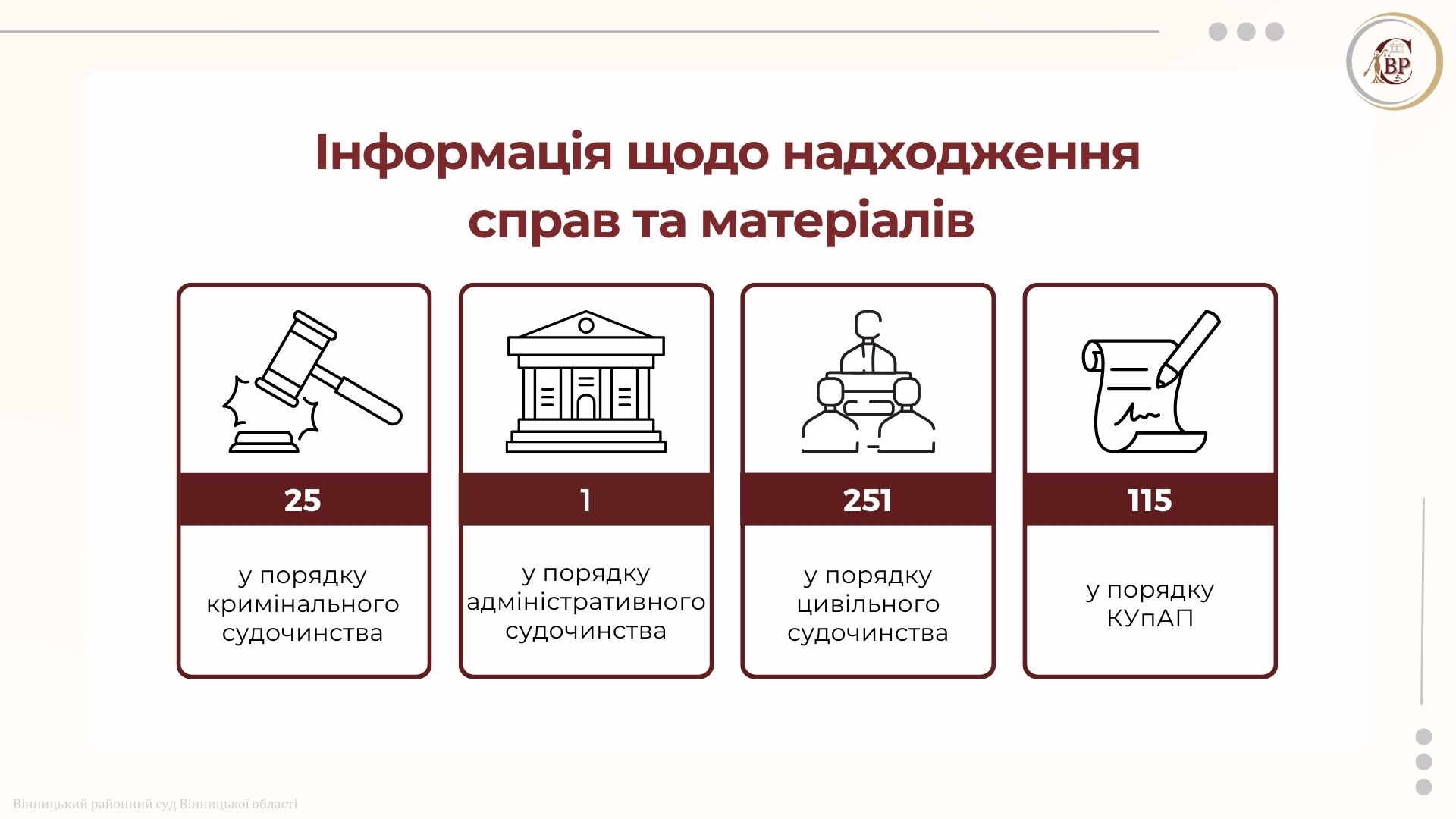 Статистична інформація суду за період 16.12.2025 – 31.12.2025